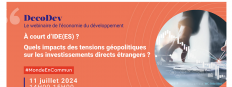 Dans le cadre du cycle « DécoDev », l’Agence française de développement (AFD) vous propose d'assister au webinaire « Décoder l’économie du développement | Économie internationale : Quels impacts des tensions géopolitiques sur les investissements directs étrangers ? » qui aura lieu le 11 juillet à 14h00 en ligne sur Livestorm.